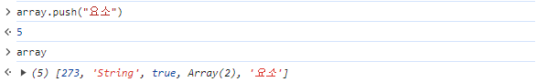 - Array.push(요소) : 맨 뒤에 요소 추가