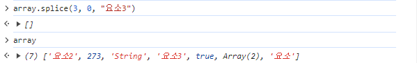 - Array.splice(인덱스, 0, 요소) : 원하는 인덱스에 요소 추가