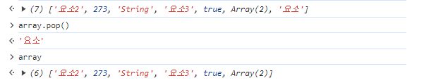 - Array.pop() : 맨 뒤의 요소 삭제