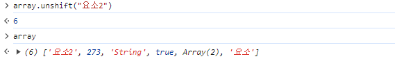 - Array.unshift(요소) : 맨 앞에 요소 추가