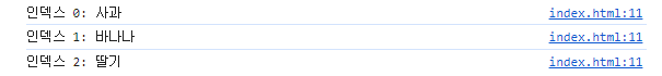 console.log(`인덱스 ${인덱스}: ${요소}`);