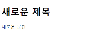 document.body.innerHTML = '<h1>새로운 제목</h1><p>새로운 문단</p>'