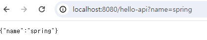 이 코드를 실행하면 "/hello-api" 경로로 GET 방식으로 요청이 올 때, 요청에 포함된 "name" 파라미터를 이용하여 Hello 객체를 생성하고 이를 JSON 형태로 응답으로 반환다.