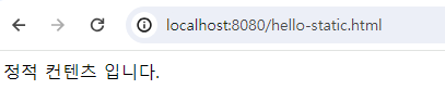 이후 localhost:8080/hello-static.html 로 들어가면 해당 내용이 그대로 올라와있는 것을 알 수 있다.