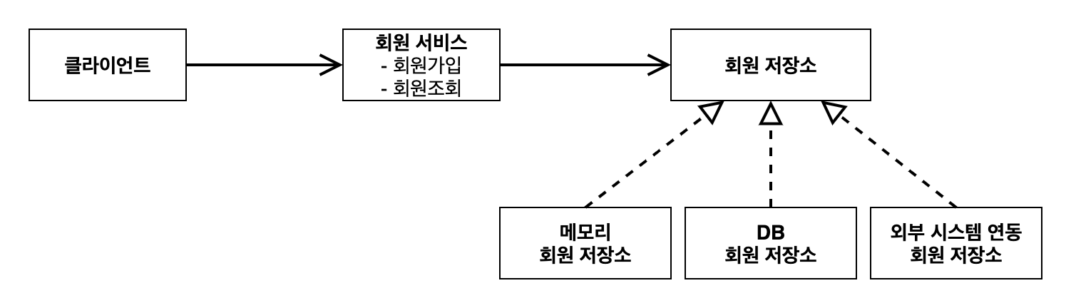 회원을 메모리가 아닌 실제 DB에서 조회하고, 정률 할인 정책(주문 금액에 따라 % 할인)을 지원해도 주문 서비스를 변 경하지 않아도 된다. 협력 관계를 그대로 재사용 할 수 있다.