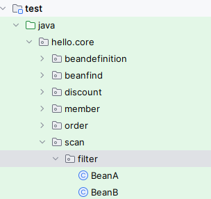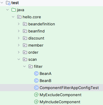 - includeFilters 에 MyIncludeComponent 어노테이션을 추가해서 BeanA가 스프링 빈에 등록된다.