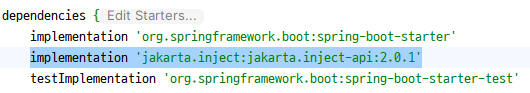 jakarta.inject:jakarta.inject-api:2.0.1 라이브러리를 gradle에 추가해야 한다.