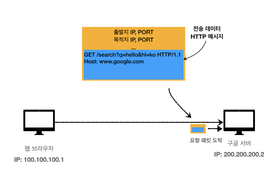 6. TCP/IP 계층에서 HTTP 요청 메시지에 패킷으로 감싼다.