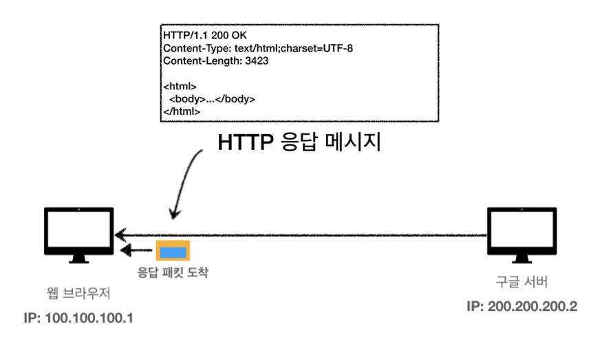 8. 서버가 HTTP 응답 메시지를 만들어서 TCP/IP 패킷을 감싸서 클라이언트에게 도착하면 클라이언트는 패킷을 열어서 HTTP 응답 메시지를 확인해서 해석한다.
