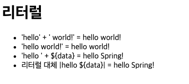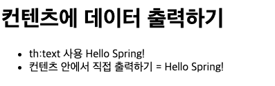 <li>컨텐츠 안에서 직접 출력하기 = [[${data}]]</li>