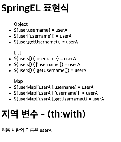 사용자 이름1 <span th:text="${user.username}"></span>