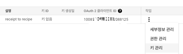 만든 계정의 키 관리 버튼을 누른다.