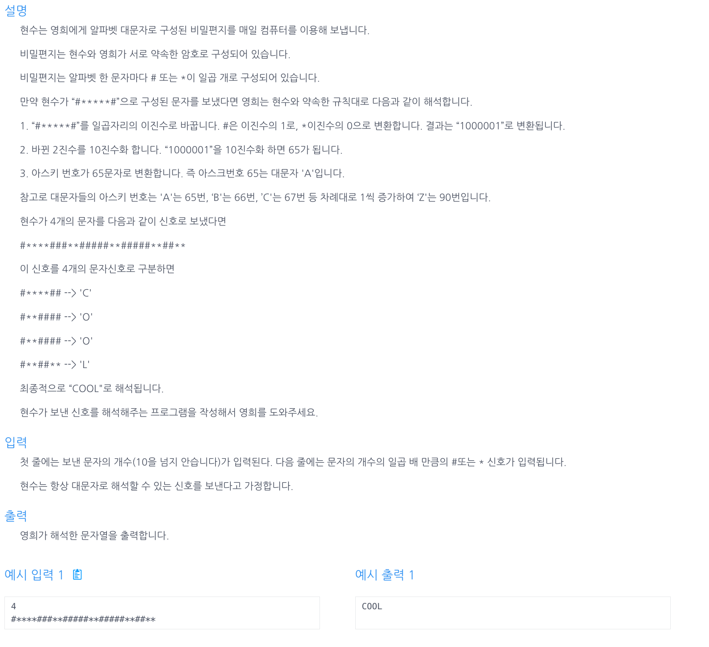 ![[인프런 알고리즘] Chpater 1, 12번 문제(암호)](https://img1.daumcdn.net/thumb/R750x0/?scode=mtistory2&fname=https%3A%2F%2Fblog.kakaocdn.net%2Fdna%2FEpfqH%2FbtsIt5FcC2m%2FAAAAAAAAAAAAAAAAAAAAANzeQAyvaU34LpFfvD70j_aURXV3S0eh47L2IQjJRVo2%2Fimg.png%3Fcredential%3DyqXZFxpELC7KVnFOS48ylbz2pIh7yKj8%26expires%3D1761922799%26allow_ip%3D%26allow_referer%3D%26signature%3DVTN31jhYNDBLVHZBHNFEAqPlYA8%253D)