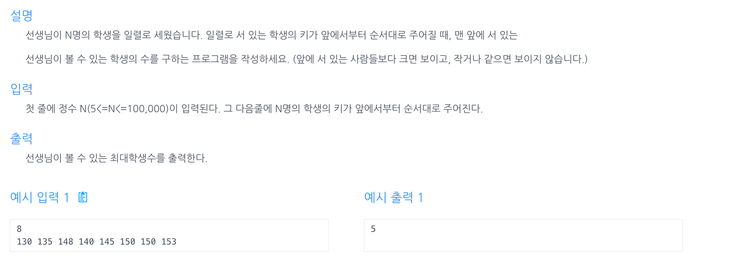 - 반복문을 돌면서 이전 숫자보다 큰 경우에만 count를 증가시킨다.