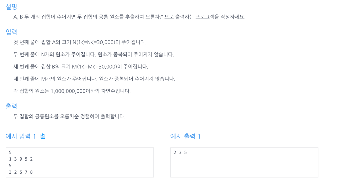 - 두 포인터를 이동시키면서 공통된 원소를 찾는다.