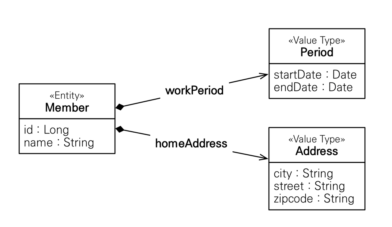주로 기본 값 타입을 모아서 만들기 때문에 복합 값 타입이라고도 한다.