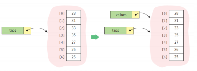 values = temps #얕은 복사 (shallow copy)