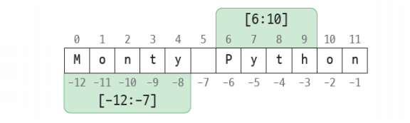 파이썬에서 문자열은 문자들이 모여있는 리스트이다.s = "Monty Python" print(s[0]) #M print(s[6:10]) #Path print(s[-12:-7]) #Monty