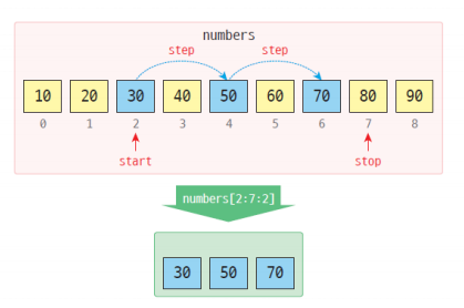 numbers[2:7:2] # [30, 50, 70]
