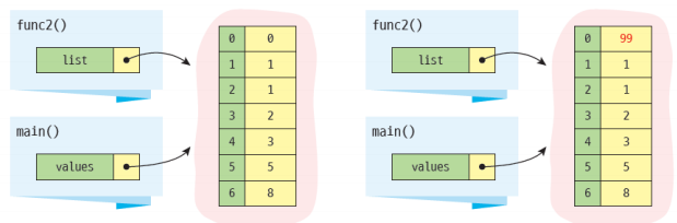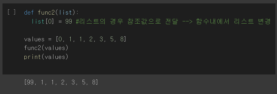 참조값으로 전달되며, 함수 내에서 리스트의 변경이 가능 (call by reference)