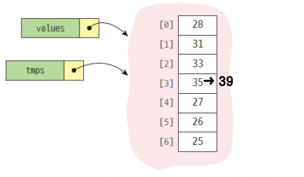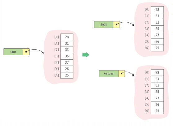 values = temps #얕은 복사 (shallow copy)