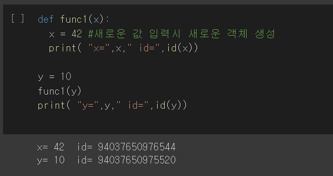 불변 객체(int, float, tuple, string등) :