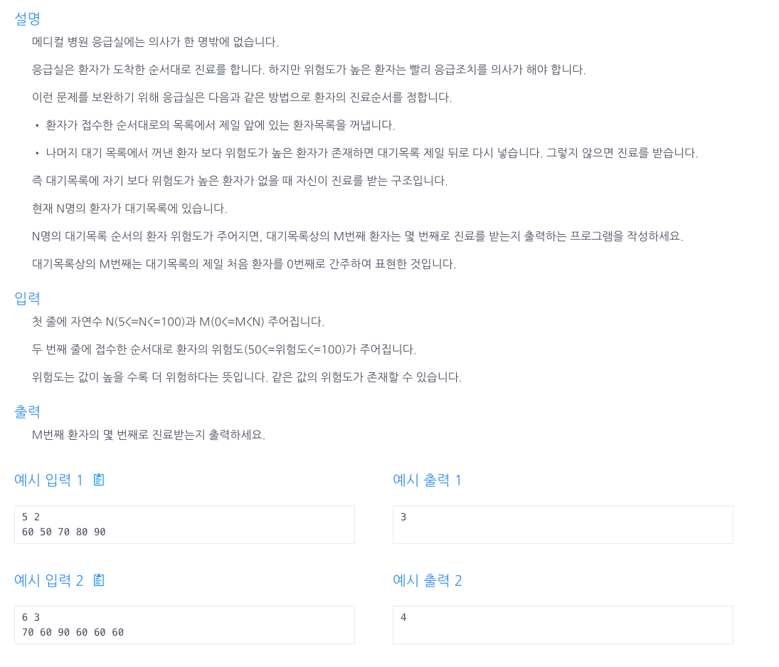 ![[인프런 알고리즘] Chpater 5, 8번 문제(응급실)](https://img1.daumcdn.net/thumb/R750x0/?scode=mtistory2&fname=https%3A%2F%2Fblog.kakaocdn.net%2Fdna%2FbcqmJf%2FbtsI2QHsvbl%2FAAAAAAAAAAAAAAAAAAAAABWn2s97i7vNSa7reZ5QqzxNmL5TReZWYOaeqAex9Lda%2Fimg.png%3Fcredential%3DyqXZFxpELC7KVnFOS48ylbz2pIh7yKj8%26expires%3D1761922799%26allow_ip%3D%26allow_referer%3D%26signature%3DElZcY4bXoLw6inAdUBLCCdkJp0E%253D)