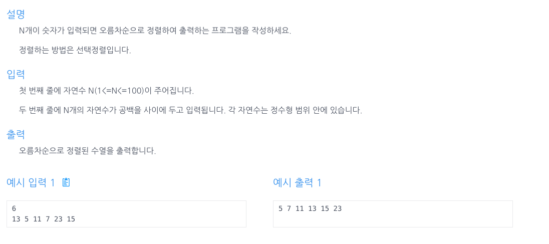 ![[인프런 알고리즘] Chpater 6, 1번 문제(선택 정렬)](https://img1.daumcdn.net/thumb/R750x0/?scode=mtistory2&fname=https%3A%2F%2Fblog.kakaocdn.net%2Fdna%2FEDq0N%2FbtsI6c9WIeR%2FAAAAAAAAAAAAAAAAAAAAAOnEbcBa4euLEEVbmXfv7jhXBMN7FSdVtuFnDcI_g8xH%2Fimg.png%3Fcredential%3DyqXZFxpELC7KVnFOS48ylbz2pIh7yKj8%26expires%3D1761922799%26allow_ip%3D%26allow_referer%3D%26signature%3DPUXtM5Gh6K8nnxDES3f6ndB5ktk%253D)