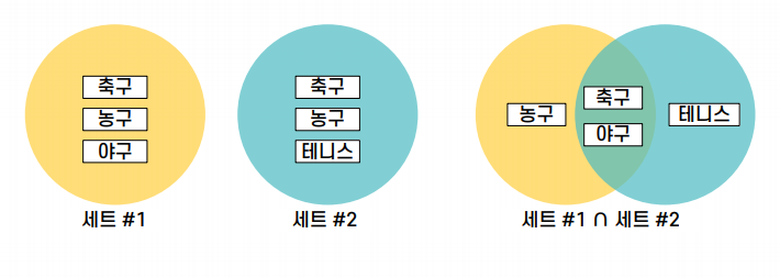 세트는 우리가 수학에서 배웠던 집합의 개념과 똑같음