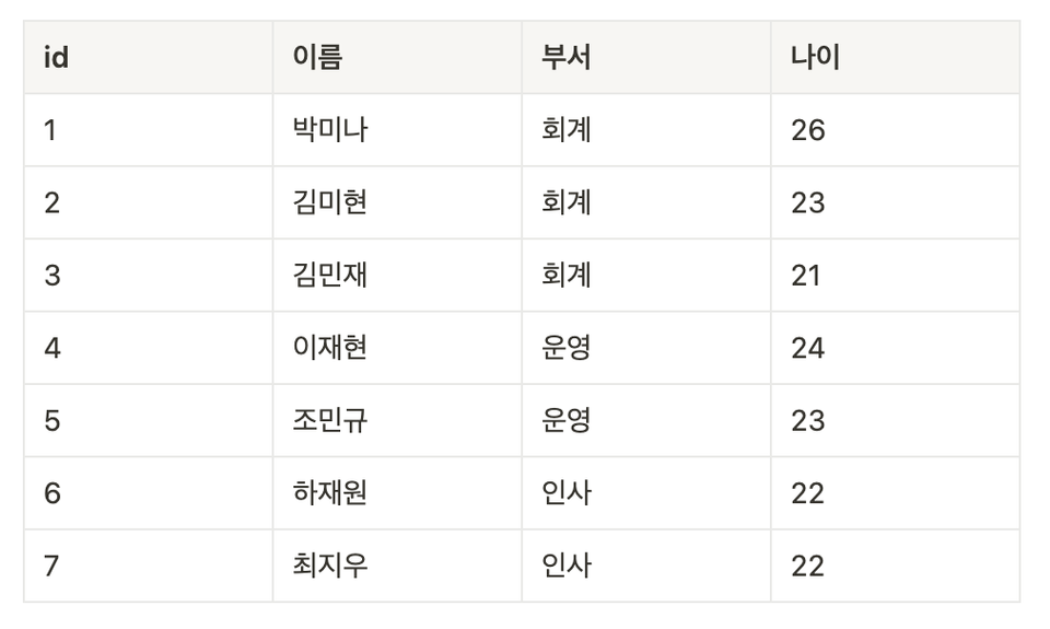 아래와 같은 users 테이블이 있다고 가정하자.