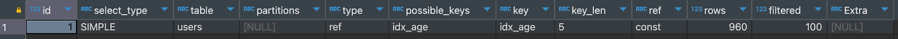 EXPLAIN SELECT * FROM users WHERE age = 23; # type : ALL