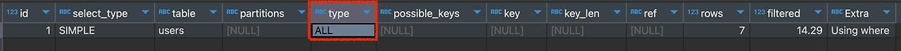 - 그래서 실행 계획의 type이 ALL로 나온 것이다.