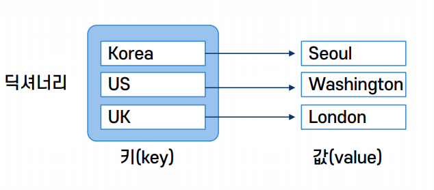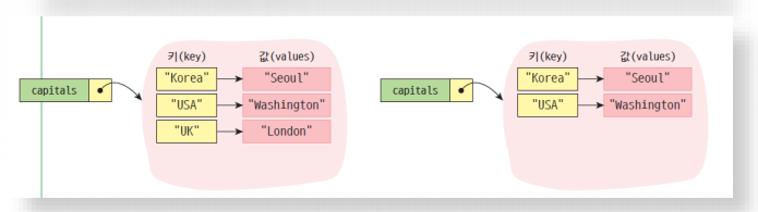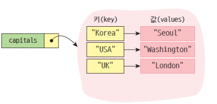 capitals = {"Korea" : "Seoul", "USA" : "Washingtom", "UK" : "London"} #키와 값을 정의