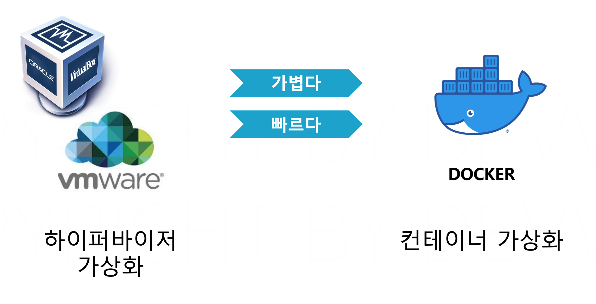 -VM을 시작하는 데 시간이 걸리고, 리소스 사용량이 상대적으로 크다. - 컨테이너 가상화: