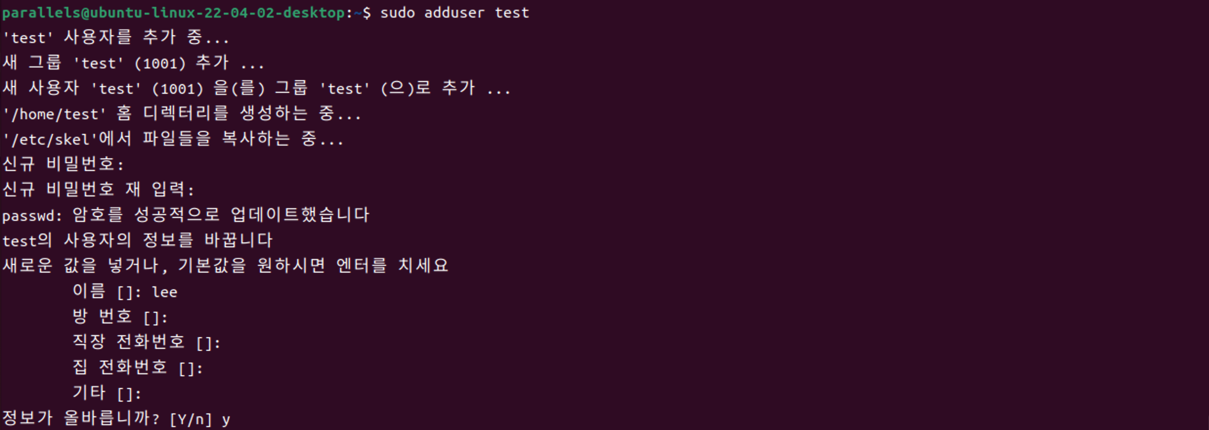 위 명령어로 사용자를 추가할 수 있다.