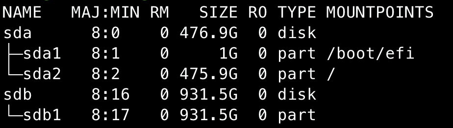 - sdb: 931GB 디스크 (외장 SSD)