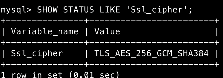 SHOW STATUS LIKE 'Ssl_cipher';