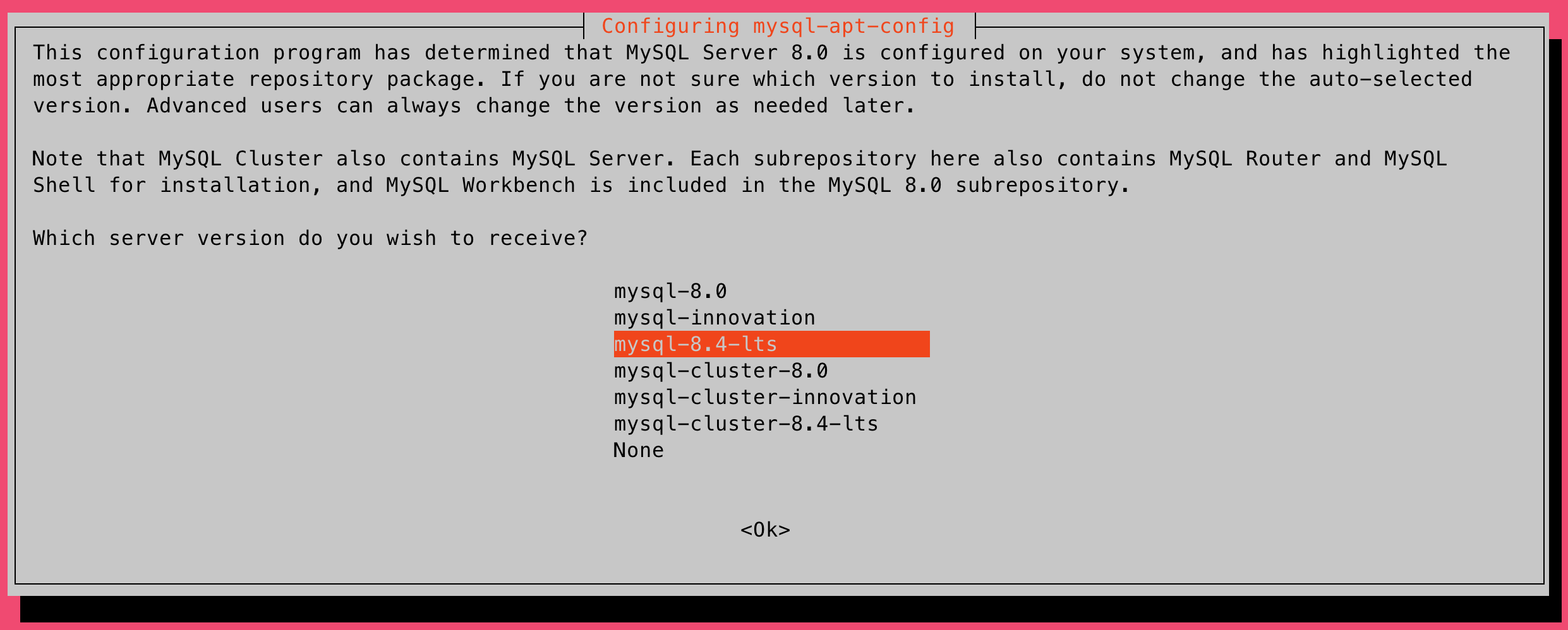 - mysql-8.4-lts 선택