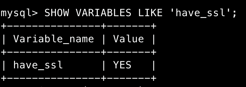 SHOW VARIABLES LIKE 'have_ssl';