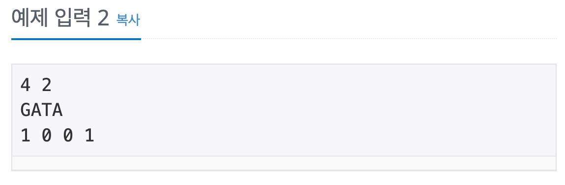 inputACGT는 입력 받은 부분문자열에 포함되어야할 최소 개수이다.