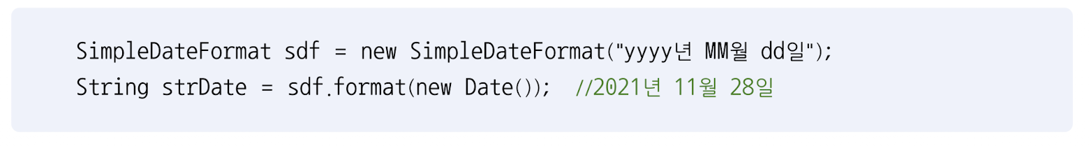 - SimpleDateFormat은 날짜를 형식화된 문자열로 변환하는 기능을 제공한다.