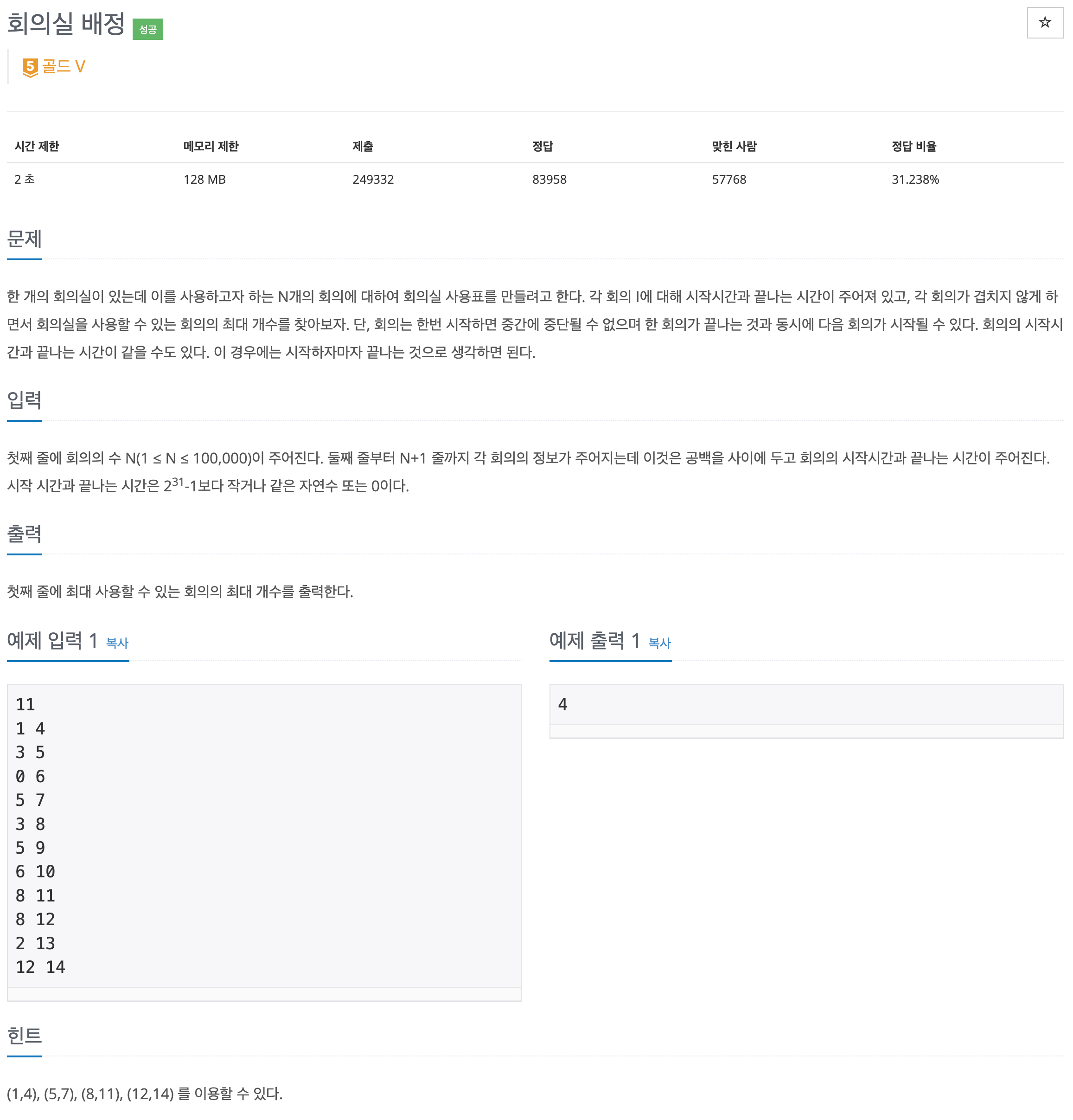 원본 링크 : https://www.acmicpc.net/problem/1931