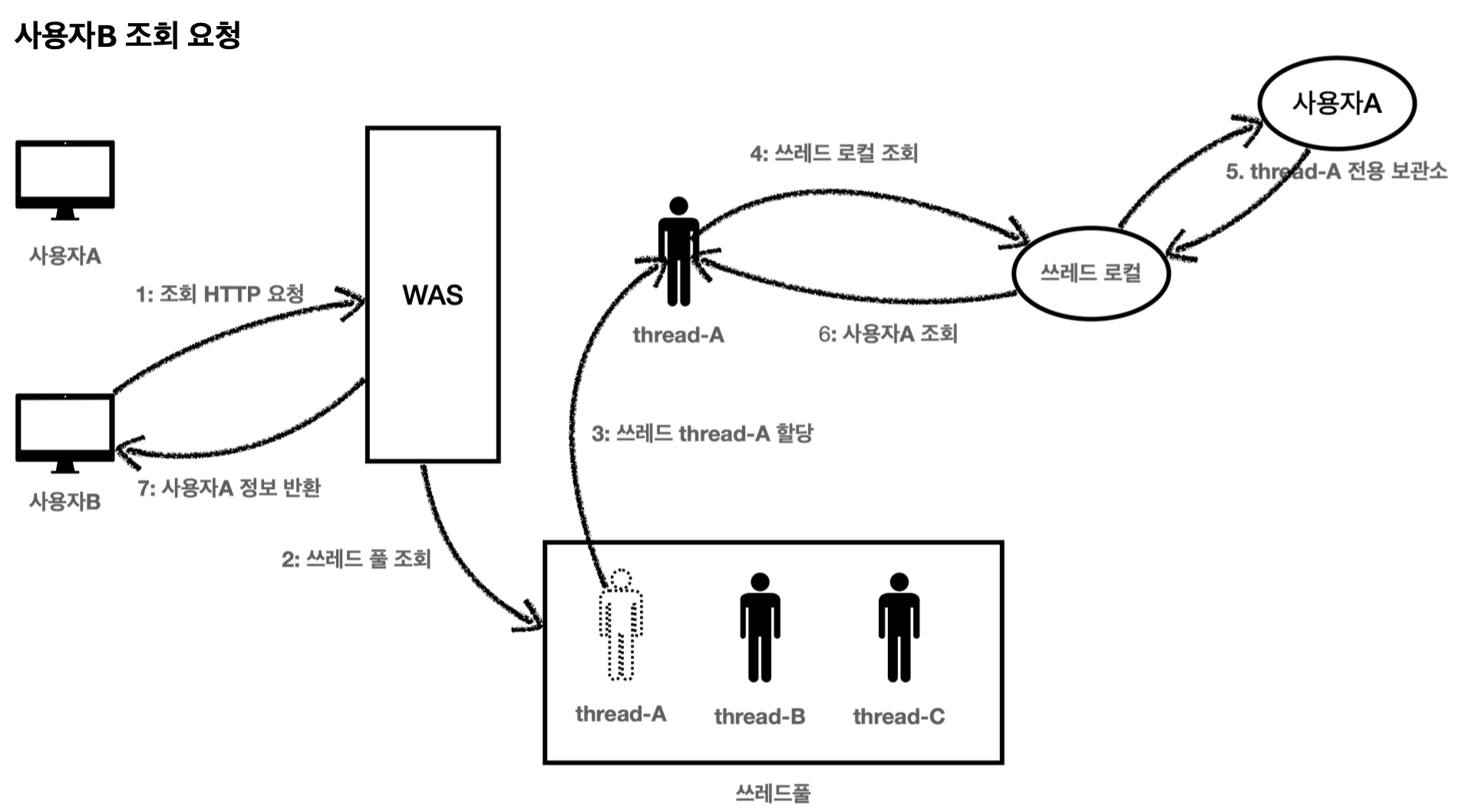 - 물론 thread-B 가 조회하면 thread-B 전용 보관소에서 userB 데이터를 반환해준다.