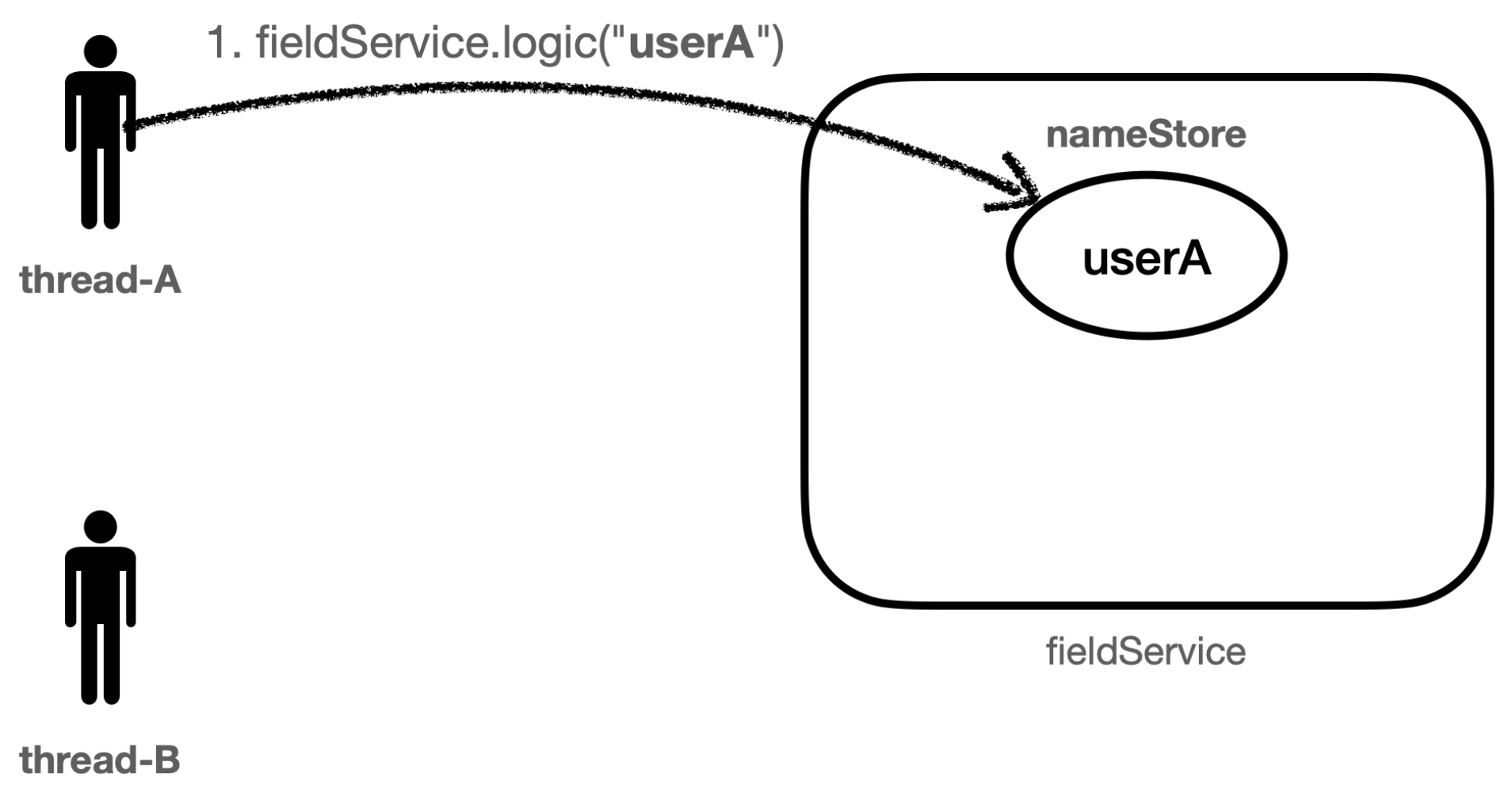 기존에 있던 FieldService 와 거의 같은 코드인데, nameStore 필드가 일반 String 타입에서 ThreadLocal 을 사용하도록 변경되었다.
