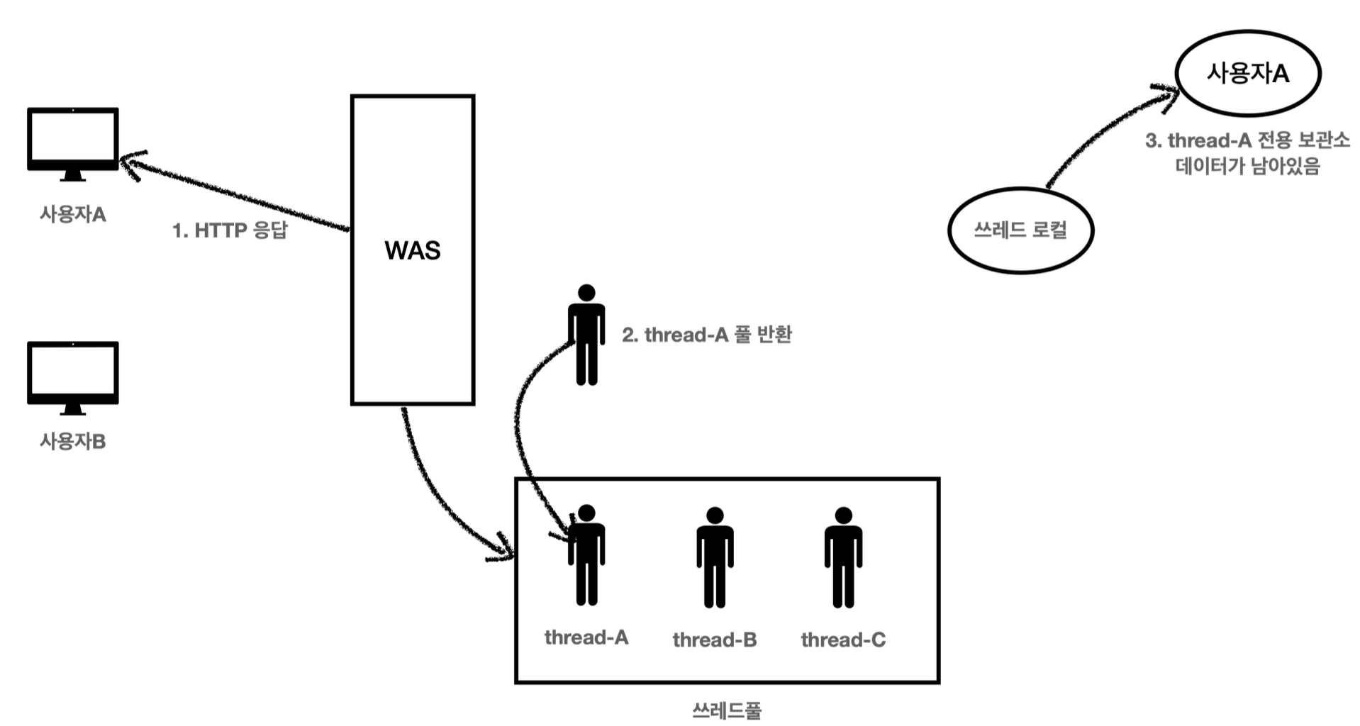 - 이때 이전 요청에서 ThreadLocal에 저장한 값이 삭제되지 않으면, 다음 요청에도 남아 있게 된다.