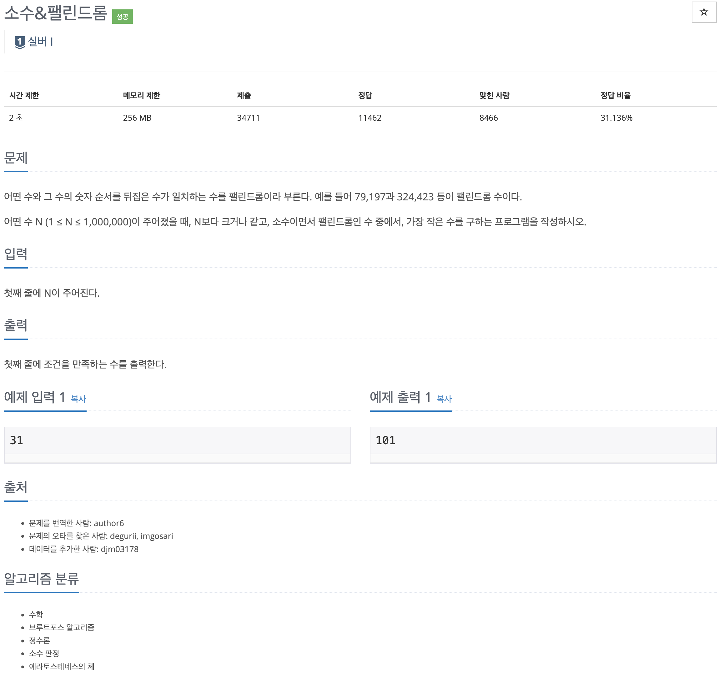 원본 링크 : https://www.acmicpc.net/problem/1747