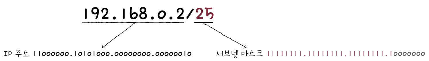 192.168.0.2/25라는 표기가 있다고 가정해 보자.