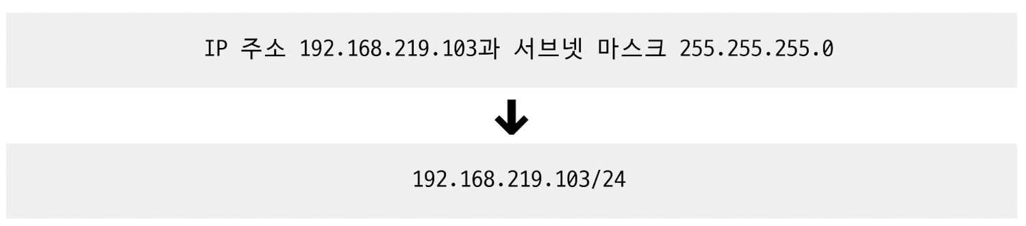 ‘IP 주소/서브넷 마스크상의 1의 개수’ 형식으로 표기하는 방법