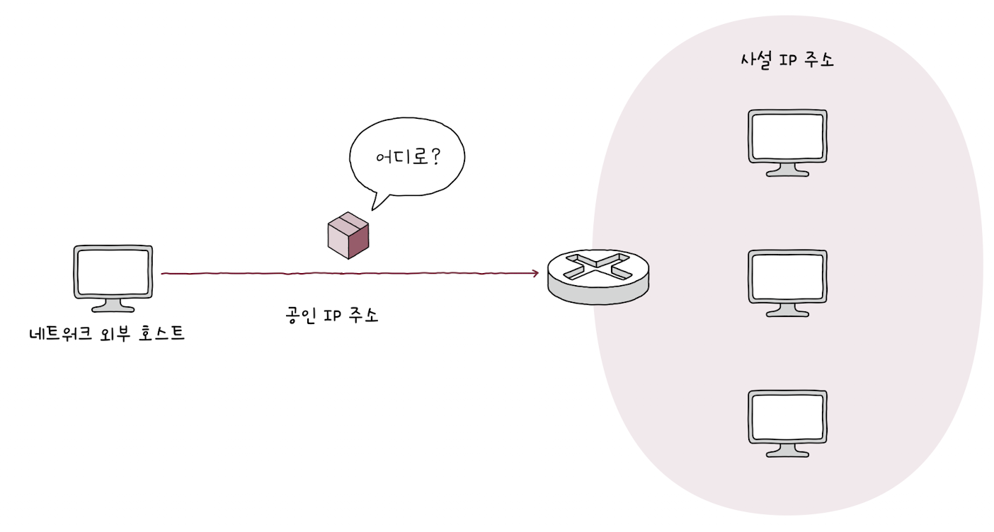 네트워크 외부의 호스트가 네트워크 내부의 특정 호스트에게 패킷을 전달하고 싶어도, 네트워크 내에서는 사설 IP 주소를 사용하고 있고 여러 호스트가 하나의 공인 IP 주소를 공유하고 있다.