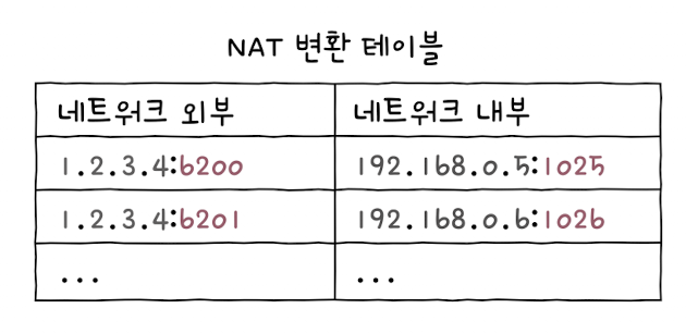 같은 1.2.3.4라는 공인 IP 주소로 변환되더라도 포트 번호 6200번으로 변환되느냐, 6201번으로 변환되느냐에 따라 내부 IP 주소를 구분지을 수 있다.